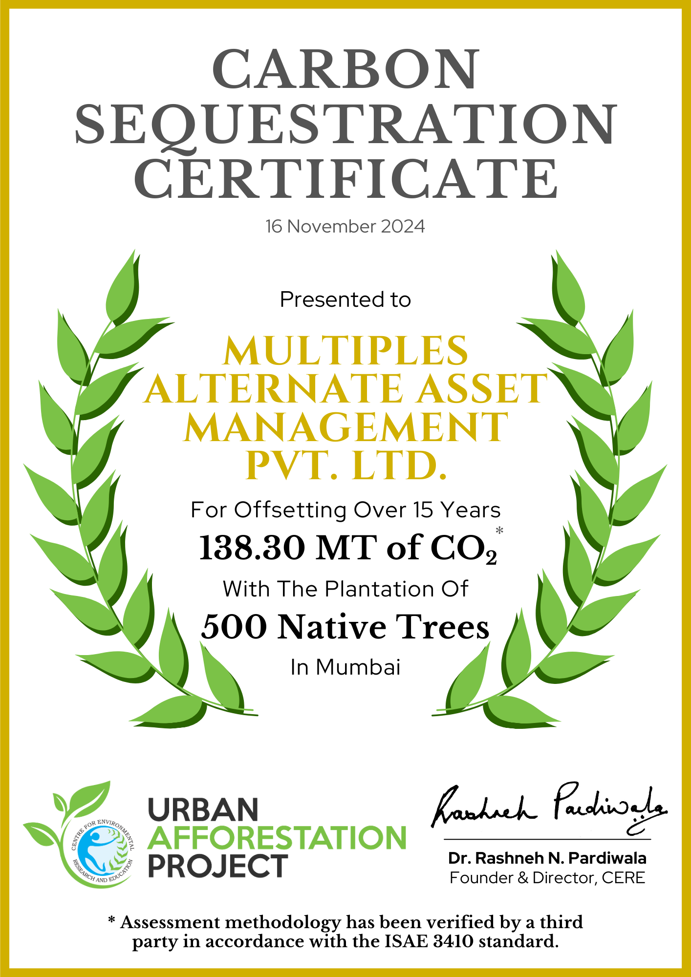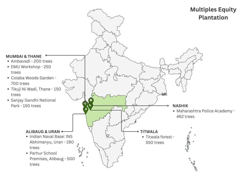In association with CERE, Multiples has planted 3,152 trees so far to contribute to urban greening. Some notable species include 1) Tamhan 2) Karanj 3) Beeja patta 4) Sita Ashok 5) Awla 6) Mango
