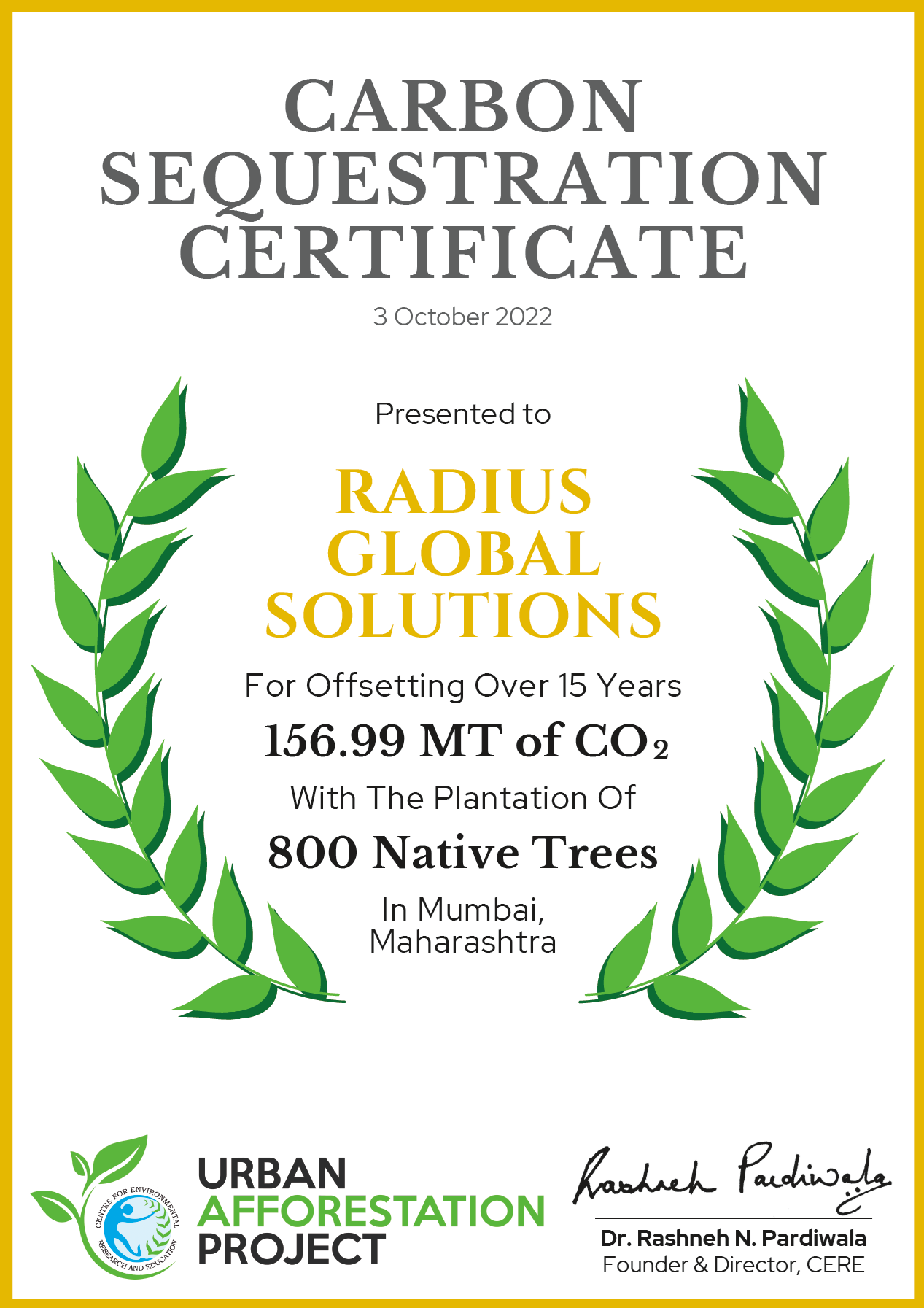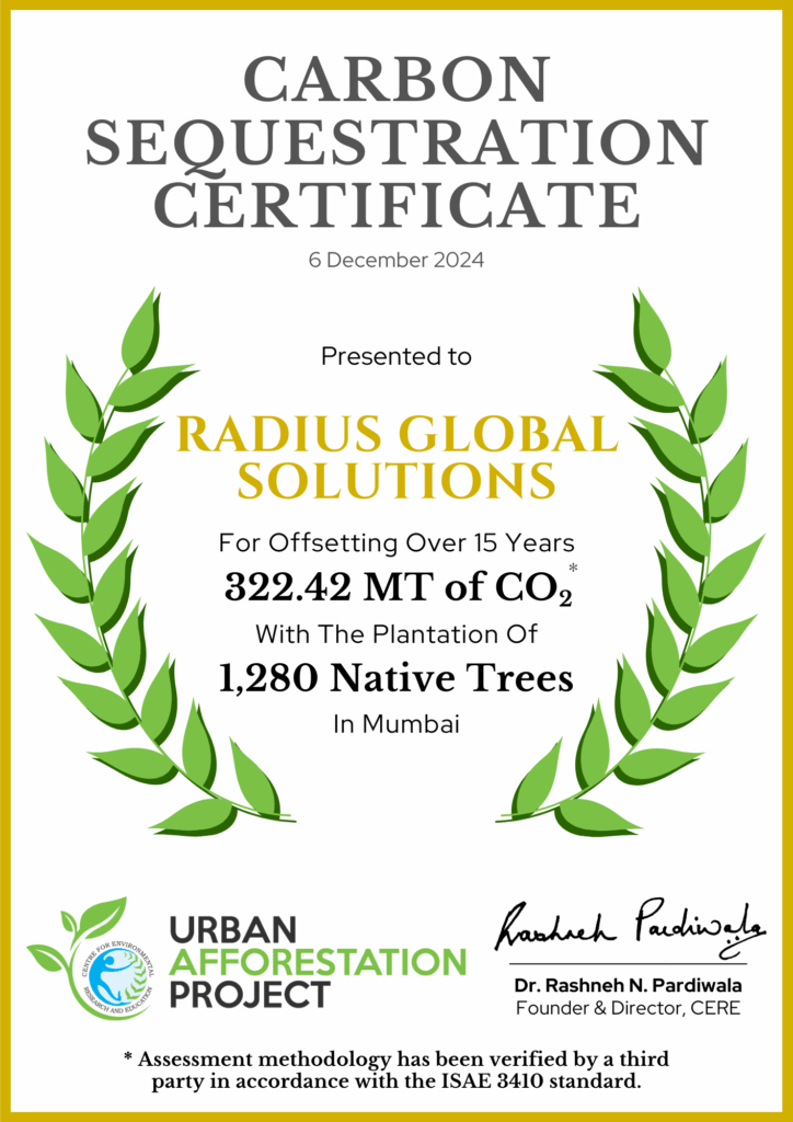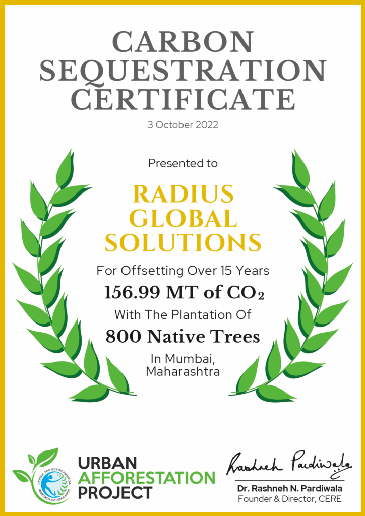 They have planted 2,080 trees in association with CERE for their sustainability initiative. Some of the species planted include 1) Amaltas 2) Beeja patta 3) Red sandalwood 4) Sita Ashok 5) Arjun