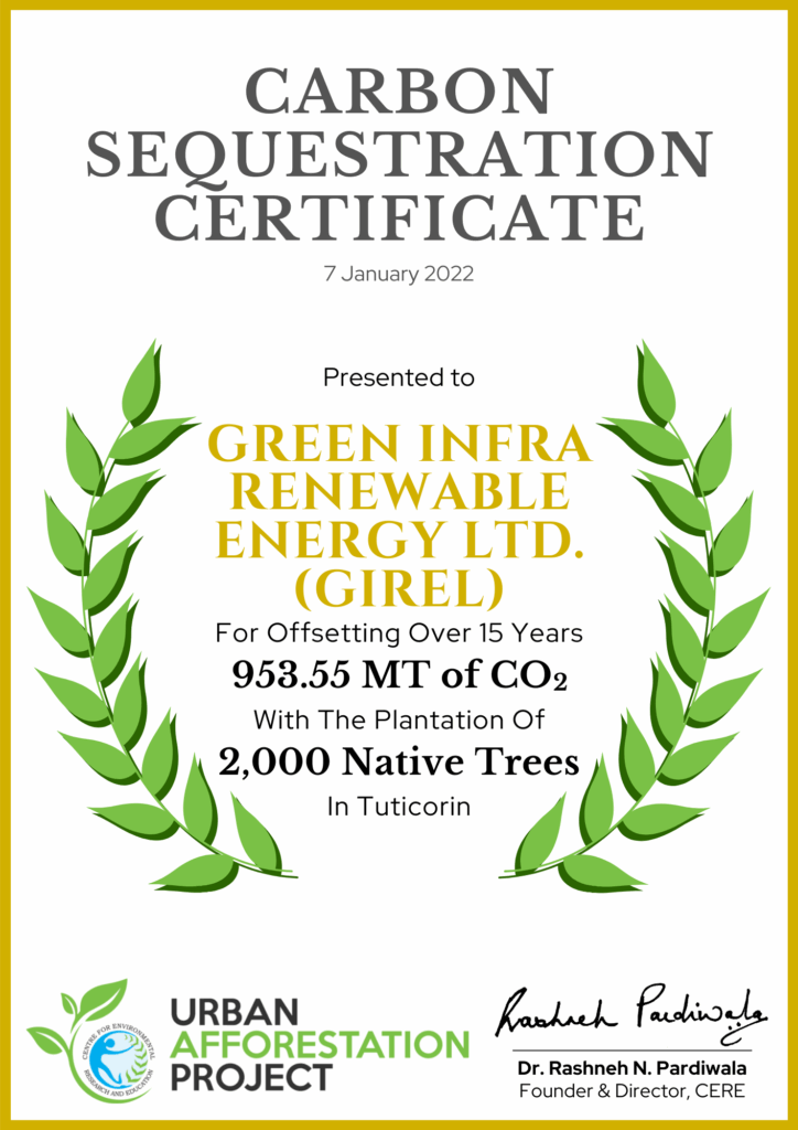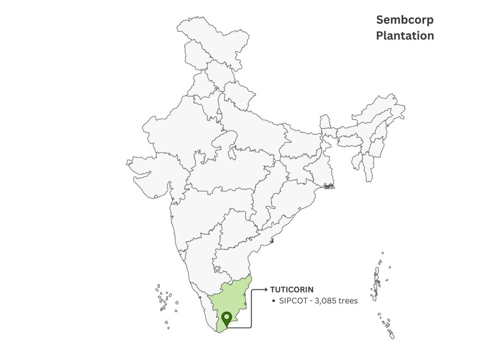In association with CERE, Sembcorp has planted 3,085 trees so far to contribute to urban greening which include species such as 1) Mahua 2) Umber 3) Jamun 4) Arjun 5) Karanj 6)Beeja patta
